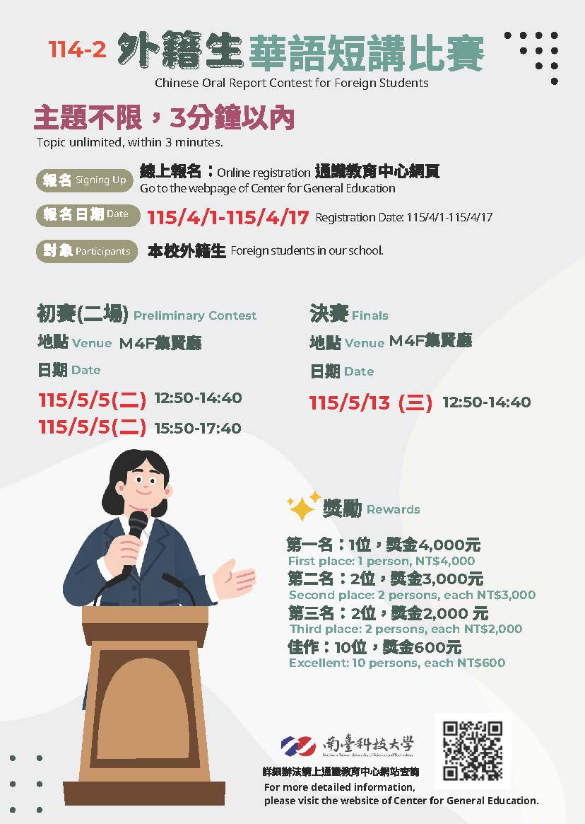 決賽名單於115年5月8日(五)10:00公布於通識教育中心網頁。